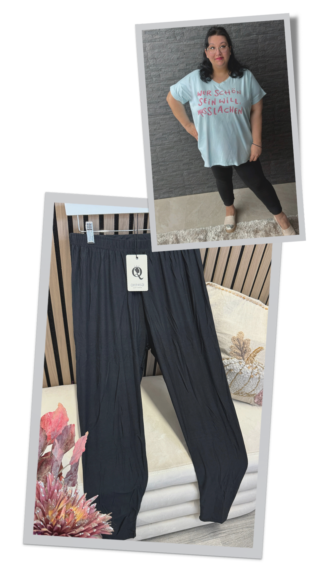 Ich trage selbst Plus Size (Größe 56) und probiere jedes Teil persönlich an, bevor es in den Shop kommt.