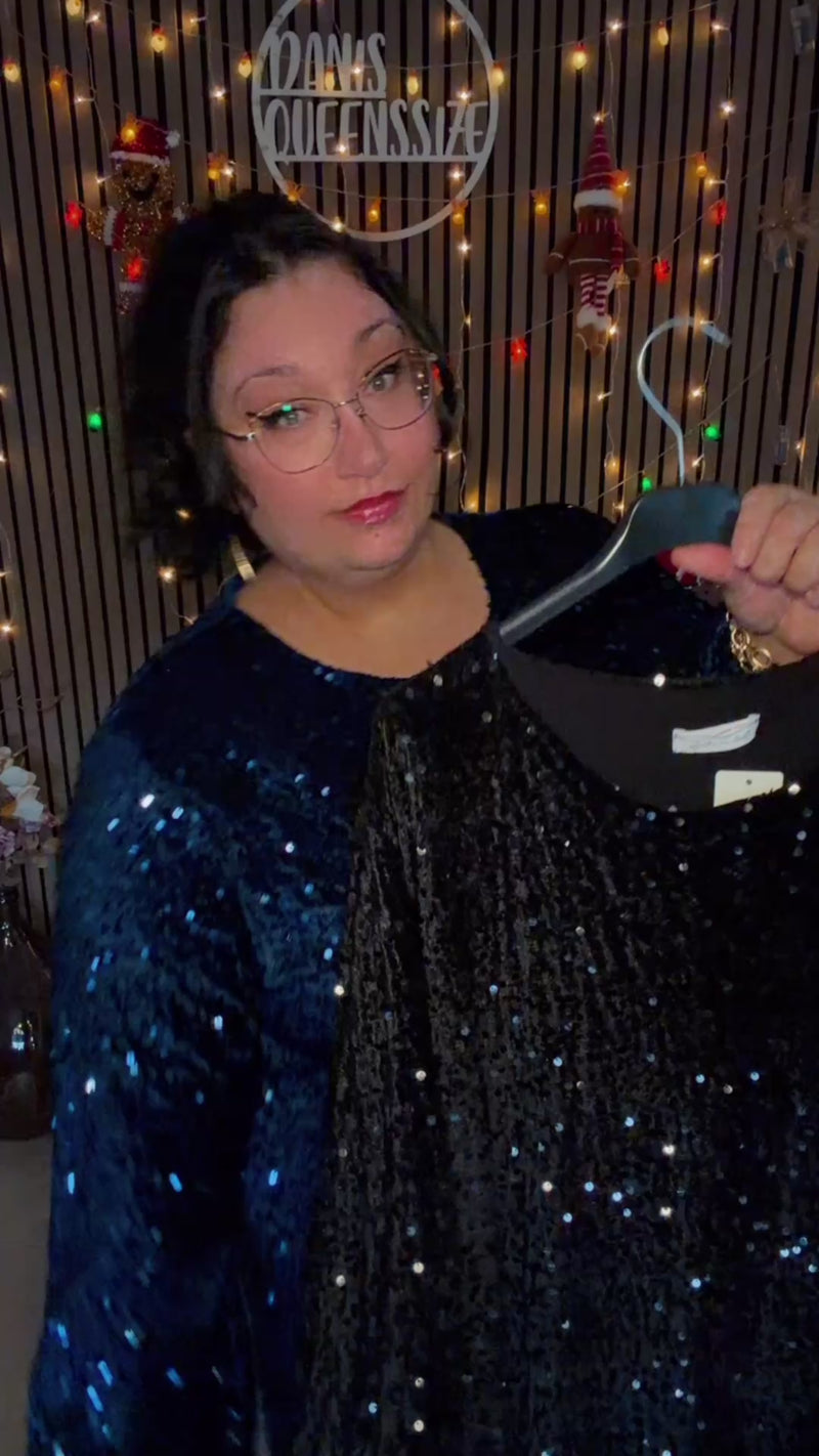 Ein schlichtes, elegantes Midi-Kleid aus weichem Samtstoff, der mit feinen, unterfütterten Pailletten bestickt ist. Die Innenseite bleibt angenehm auf der Haut und erhält den edlen Look ohne aufzukratzen. Die lange, bewusst fließende Tunika-Form macht das Modell zu einem besonderen Piece für festliche Einladungen und stilvolle Auftritte. Perfekt kombiniert mit Strumpfhose, Pumps und ergänzenden Layering-Jacken wie Fell oder Strick für eine moderne, elegante Curvy-Silhouette.